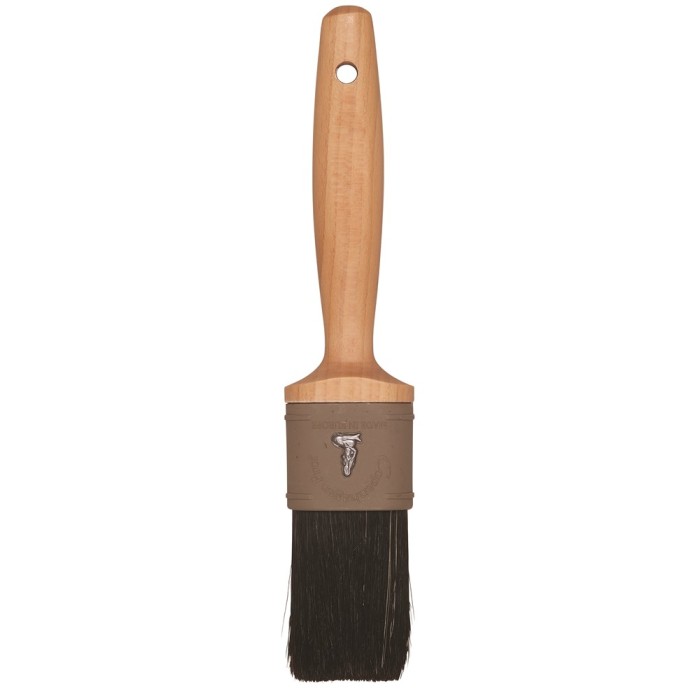 Zwart Chinees varkenshaar, kunststof bus en gewaxte houten steel. Voor verf op oplosmiddelenbasis.