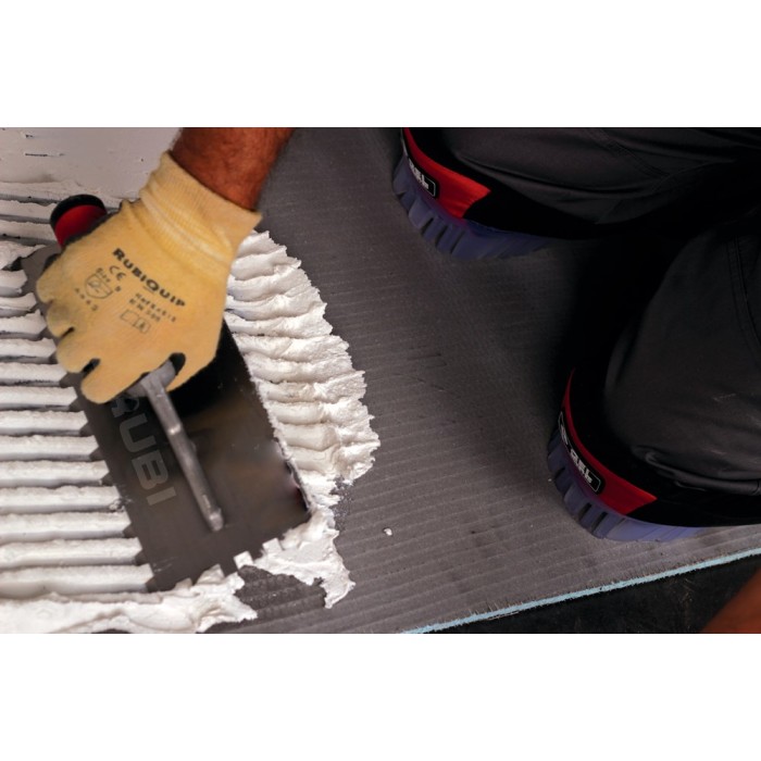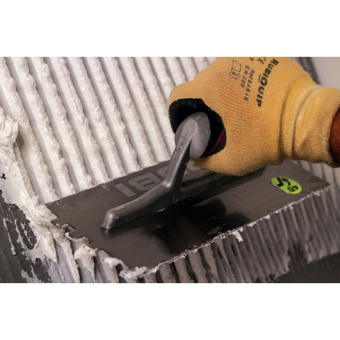 Dit RUBI troffel en spaan assortiment omvat een innovatieve lijmkam, met een hoek van 45 ? graden voor meer comfort en minder inspanning.De troffels en gekerfd troffels met de RUBIFLEX gesloten 45? verbeteren het verwerken van de hechting van de lijm van keramische tegels op het werkoppervlak.De troffels en gekerfd troffels met gesloten RUBIFLEX houten handgrepen hebben een speciale hoge slijtvaste stalen plaat en corrosiebescherming met kleurloze lak.(STAAL).Een van de kenmerken van alle RUBI troffels en inkeping troffels is de perfecte vlakheid van de plaat.De versterking en de plaat zijn zeer vast bevestigd door middel van bouten druk die eenmaal gemonteerd zijn onmogelijk te verwijderen zonder dat de unitaire karakter van het gereedschap.De troffels en gekerfd troffels met open RUBIFLEX handgrepen hebben een speciale hoge slijtvaste stalen plaat en corrosiebescherming met kleurloze lak. (STAAL).Een van de kenmerken van alle RUBI troffels en gekerfd troffels is de perfecte vlakheid van de plaat.Alle modellen van troffels en gekerfd troffels in deze reeks hebben de exclusieve RUBIFLEX ergonomische handgreep met twee texturen. Een zeer ergonomisch handgreep met een verhoogde grip.De versterking en de plaat zijn zeer vast bevestigd door middel van drukbouten die eenmaal gemonteerd zijn onmogelijk te verwijderen zonder dat het effect heeft op de unitaire karakter van het gereedschap.Bij de toepassing van lijmen voor montage keramische tegels, de open en hardingstijden van elke fabrikant moet altijd rekening worden gehouden.Troffel en lijmkam modellen met open handgrepen vergemakkelijken controle bij het aanbrengen van materiaal. Een van de voordelen die professionele tegelzetter vinden aan dit type handgreep, dankzij zijn opening, kan het gereedschap worden opgehangen aan de rand van de bak, kuip of een andere voorwerp waarin het aan te brengen materiaal zit. Hiermee kunt u de troffel of lijmkam ten allen tijde handig en schoon houden.Dit scala aan accessoires, zoals de andere assortimenten in onze catalogus is ontworpen om gebruikers tijdswinst te bieden en de effici?ntie te verhogen in hun werk. Bij RUBI zijn we ons bewust van het belang van vandaag van de effici?ntie en tijdsbesparing, dus ons product development managers zijn erg gericht op deze concepten bij het ontwerpen van nieuwe gereedschappen