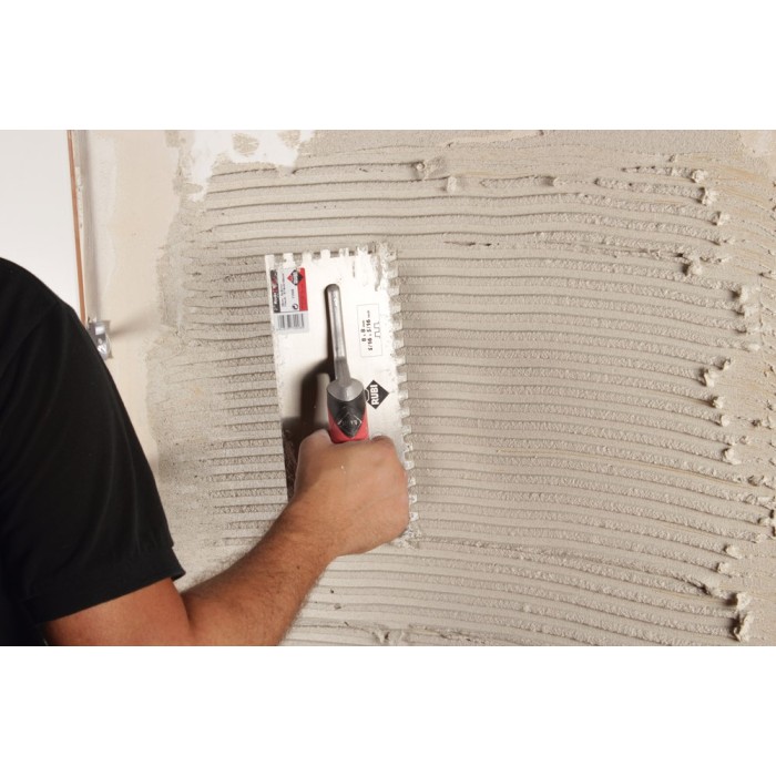 De troffels en gekerfd troffels met open RUBIFLEX handgrepen hebben een extreem lichtgewicht en aluminium versterking.De versterking en de plaat zijn zeer vast bevestigd door middel van drukbouten die eenmaal gemonteerd zijn onmogelijk te verwijderen zonder dat het effect heeft op de unitaire karakter van het gereedschap.De troffels en gekerfd troffels met open RUBIFLEX handgrepen hebben een speciale hoge slijtvaste stalen plaat en corrosiebescherming met kleurloze lak. (STAAL).Er zijn ook modellen met een speciale hoge slijtvaste roestvrij stalen plaat.Een van de kenmerken van alle RUBI troffels en inkeping troffels is de perfecte vlakheid van de plaat.Alle modellen van troffels en gekerfd troffels in deze reeks hebben de exclusieve RUBIFLEX ergonomische handgreep met twee texturen. Een zeer ergonomisch handgreep met een verhoogde grip.Troffel en lijmkam modellen met open handgrepen vergemakkelijken controle bij het aanbrengen van materiaal. Een van de voordelen die professionele tegelzetter vinden aan dit type handgreep, dankzij zijn opening, kan het gereedschap worden opgehangen aan de rand van de bak, kuip of een andere voorwerp waarin het aan te brengen materiaal zit. Hiermeekunt u de troffel of lijmkam ten allen tijde handig en schoon houden.Een ander aspect dat het RUBI assortiment troffels en lijmkammen onderscheid van de rest is het brede scala van modellen en afmetingen van de inkepingen.Bij de toepassing van lijmen voor de montage van keramische tegels, moet er altijd rekening gehouden worden met de open en hardingstijden van elke fabrikant.Daarnaast, als onderdeel van de strategie, wordt bij RUBI continu onderzoek gedaan op basis van de evolutie van de gereedschappen en op basis van de eisen van de door toonaangevende keramische tegel fabrikantenwereldwijd, 30.000 RUBI dealers en meer dan 40.000 eindgebruikers die geregistreerd zijn bij de RUBI club. Als gevolg van al deze factoren, biedt RUBI professionele tegelzetters de meest uitgebreide en geschikt bereik van tools op de markt. Alles wat je nodig hebt voor alle fasen van de verwerking van keramische tegels.