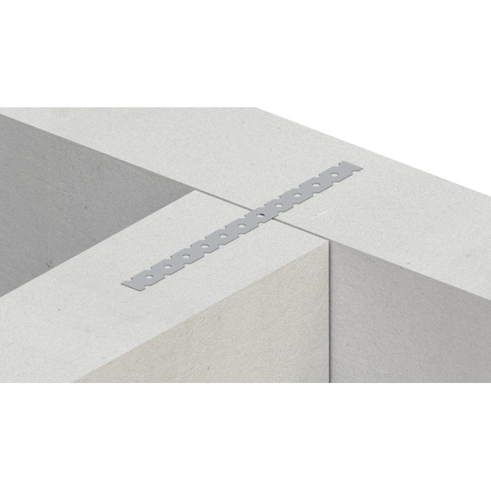 Geperforeerde platte strip voor het koppelen van gelijmde kalkzandsteen elementen en blokken. Lijmkoppelstrippen worden tijdens het lijmen verwerkt in de lintvoeg ter plaatse van een koppelnaad om de wand te stabiliseren.