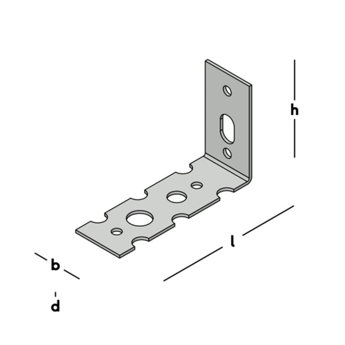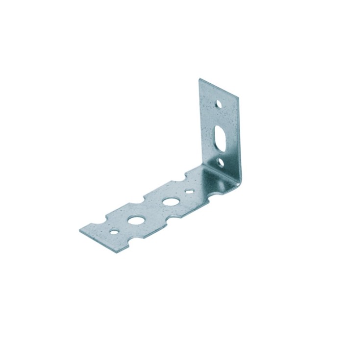 Lijm/montage anker (hoek met ??n been) voor het koppelen van haaks op elkaar aansluitende gelijmde kalkzandsteen muren. Dit wandanker wordt ook toegepast bij aansluitingen van vooraf gestelde houten binnen(deur)kozijnen.