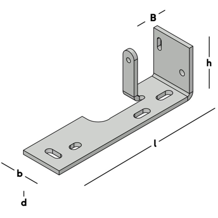 Gestanst anker voor het monteren van de muurplaat aan de verdiepingsvloer ter plaatse van de dakvoet van een schuine kap.