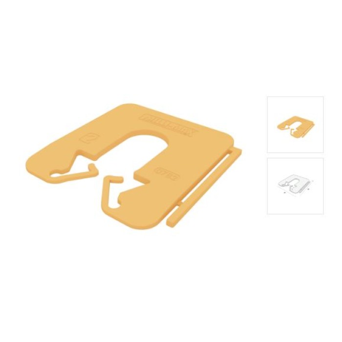 De Milli-Max uitvulplaatjes zijn voorzien van een sparing, zodat ze om de schroeven van het regelwerk heen geschoven kunnen worden. Met een dubbel haakje grijpt het plaatje direct om de schroef, zodat deze tijdens de montage niet meer kan vallen.