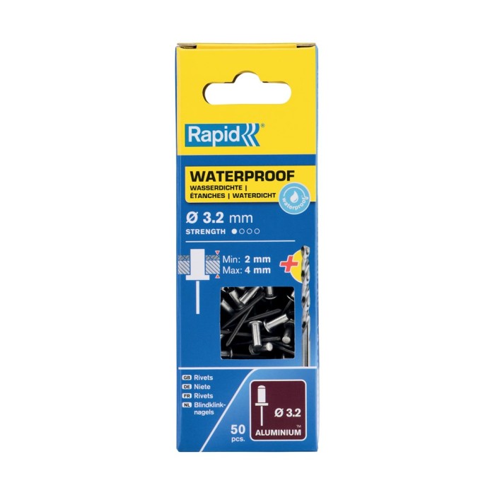 De kop van deze waterdichte blindklinknagels is gemaakt uit één deel om lekkage tussen de twee bevestigde delen te voorkomen. De ideale oplossing voor het bevestigen van sproeiers, dakgoten, dakbedekking, douchepanelen en andere klussen zoals het repareren van een tuinkas. Boor met de juiste diameter is meegeleverd in de verpakking.