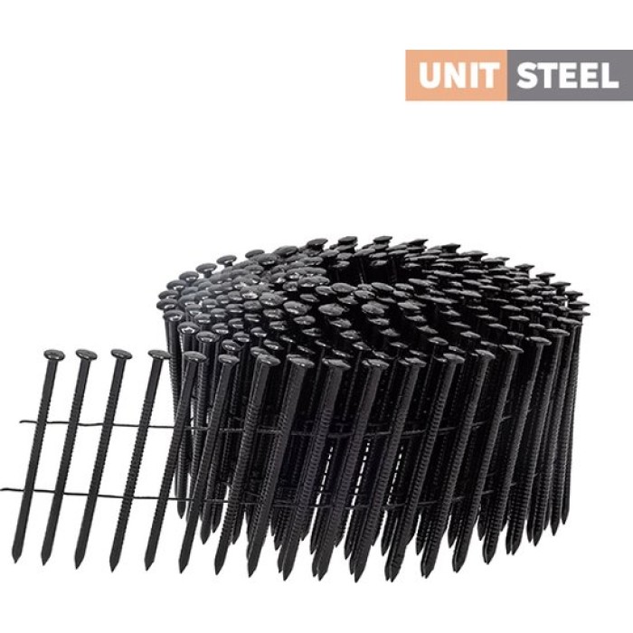Deze zwart gekleurde coilnails zijn geschikt voor rolnagel tackers.
